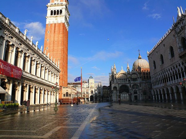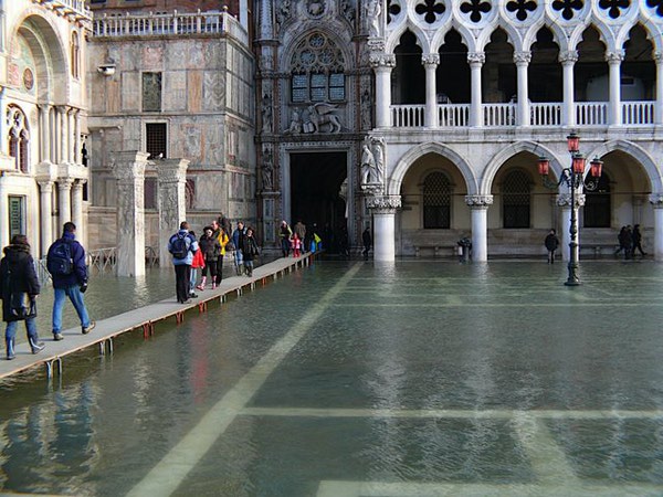 从总督宫 (Musei Civici Veneziani) 出来才让我真正见识了威尼斯的魅力, 才终于明白了为什么威尼斯会被叫做水上之都. 整个陆地几乎都已经被30-40公分深的水淹没, 以至于我在总督宫把出口误认为河边, 绕了好大一个圈, 经Ticket Office的人指点才出来
